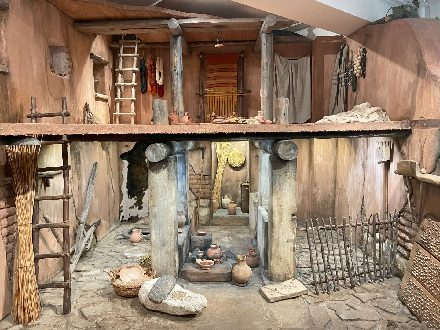 Beds, chests for clothes, and cooking utensils were located on the higher level.